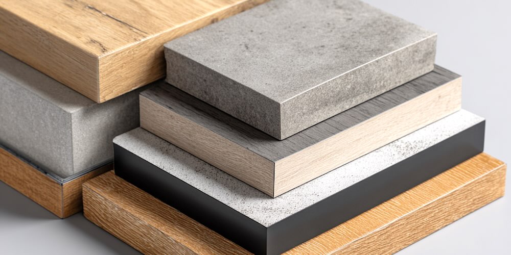 Kleuren en structuren geven sfeer. Denk aan eiken, walnoot, betonlook of natuursteenlook. Kies mat of subtiel glans. Randprofielen in RVS of zwart maken het af.
